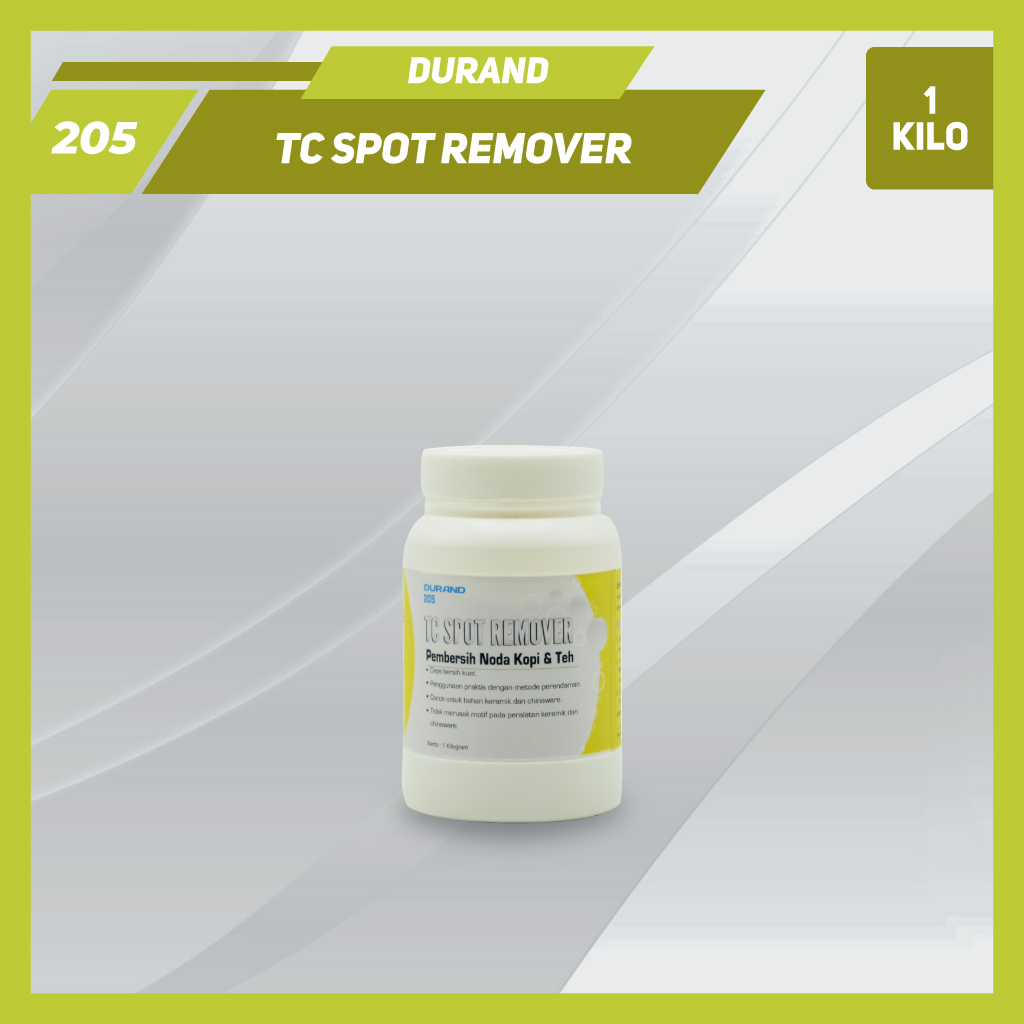 DURAND 205 TC SPOT REMOVER adalah produk yang diciptakan khusus untuk menghilangkan noda-noda teh dan kopi pada peralatan minum yang terbuat dari porselen dan keramik.