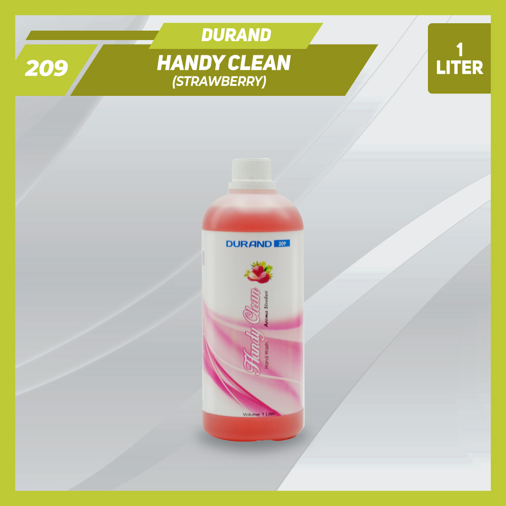 DURAND 209 HANDY CLEAN adalah produk khusus memenuhi kebutuhan pembersih tangan yang ekonomis, praktis, & higienis untuk digunakan pada semua kebutuhan cuci tangan. Kandungan anti bakterinya efektif membunuh kuman dan aman terhadap semua jenis kulit. Tersedia dalam varian aroma : Strawberry, Apel, Lemon, Lemon Citrus, Elegance, Jasmine, Green Tea, Mint, Peppermint, Plain.